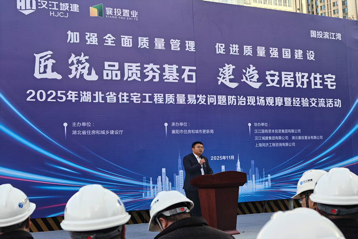 為深入落實(shí)“好房子”建設(shè)要求,推廣住宅工程質(zhì)量通病防治先進(jìn)經(jīng)驗(yàn),11月27日上午,由湖北省住房和城鄉(xiāng)建設(shè)廳主辦、襄陽(yáng)市住房和城市更新局承辦,漢江城建集團(tuán)有限公司等協(xié)辦的“2025年湖北省住宅工程質(zhì)量易發(fā)問(wèn)題防治現(xiàn)場(chǎng)觀摩暨經(jīng)驗(yàn)交流活動(dòng)”在國(guó)投濱江灣一期項(xiàng)目成功舉辦。來(lái)自襄陽(yáng)各縣(市、區(qū))住建部門、質(zhì)量監(jiān)督機(jī)構(gòu)相關(guān)負(fù)責(zé)人,市區(qū)在建工程建設(shè)、施工、監(jiān)理單位項(xiàng)目負(fù)責(zé)人及質(zhì)量管理人員共計(jì)400余人齊聚現(xiàn)場(chǎng),共學(xué)先進(jìn)工藝,共探品質(zhì)提升之道。