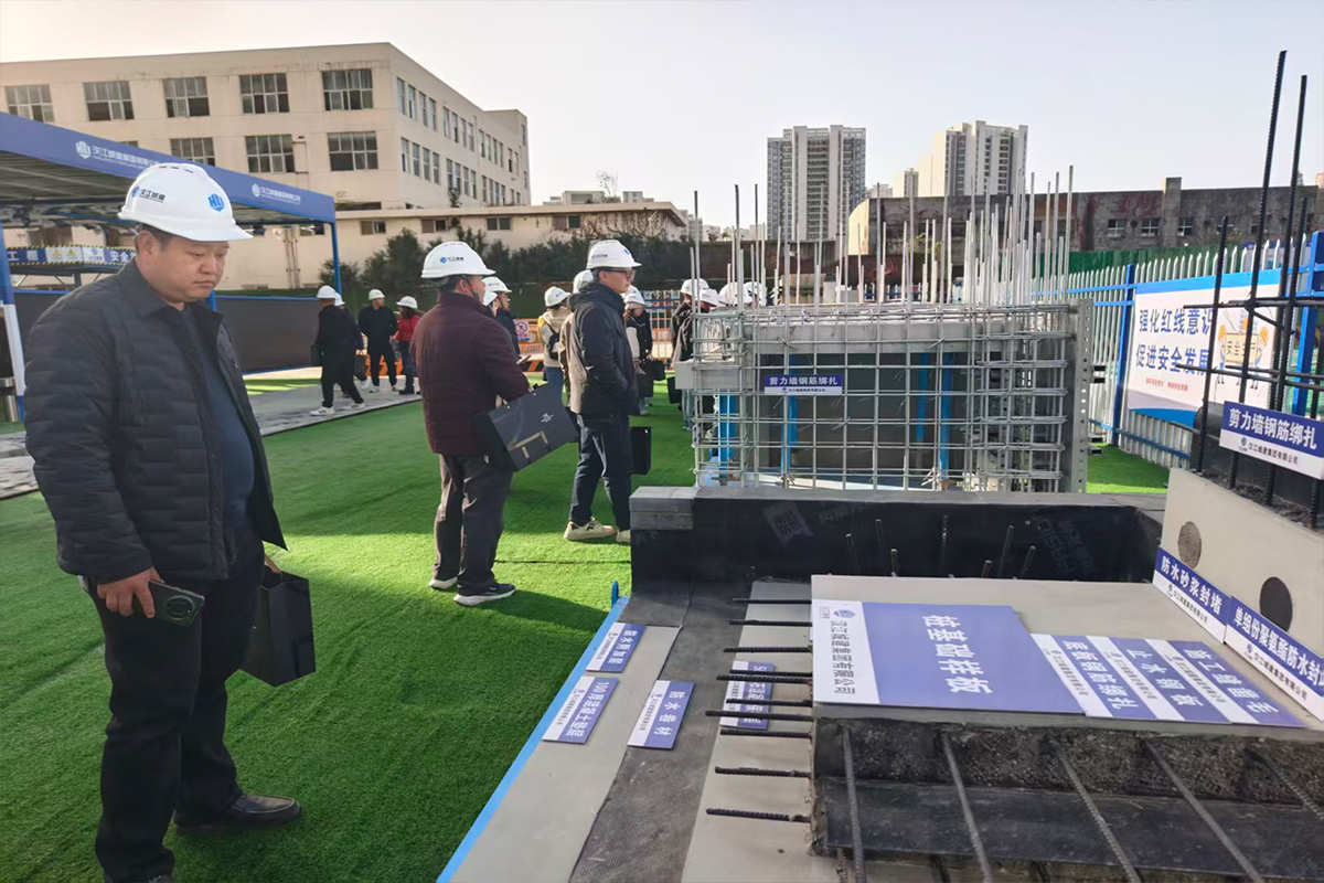 現(xiàn)場(chǎng)觀摩環(huán)節(jié),參會(huì)人員在工作人員的引導(dǎo)下,深入項(xiàng)目工藝樣板區(qū)、施工工作面等核心區(qū)域,沉浸式感受項(xiàng)目在質(zhì)量管控上的匠心細(xì)節(jié)。作為漢江城建集團(tuán)傾力打造的高品質(zhì)住宅標(biāo)桿,國(guó)投濱江灣項(xiàng)目以“根治質(zhì)量通病、提升居住品質(zhì)”為核心,構(gòu)建了全流程質(zhì)量管理體系。項(xiàng)目推行“樣板引路”制度,鋼筋綁扎、抹灰等關(guān)鍵工序均先做實(shí)體樣板,經(jīng)各方驗(yàn)收合格后方可大面積施工;借助BIM技術(shù)進(jìn)行三維建模,提前規(guī)避基坑支撐梁與地下室結(jié)構(gòu)沖突等潛在問(wèn)題,從源頭降低外墻滲漏等隱患風(fēng)險(xiǎn)。